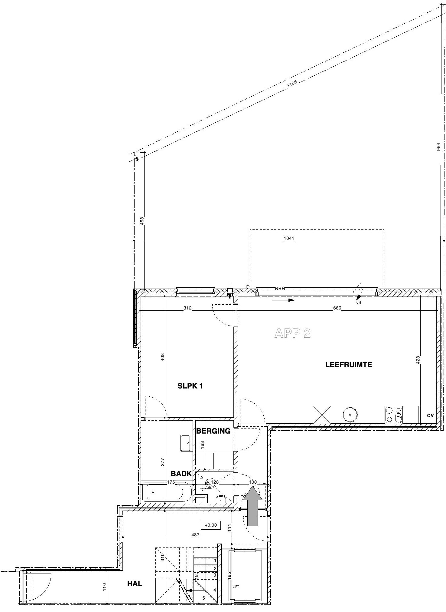 Het appartement omvat een lichtrijke leefruimte met open keuken, een ruime en gezellige slaapkamer met ensuite badkamer, een apart toilet en een technische berging.