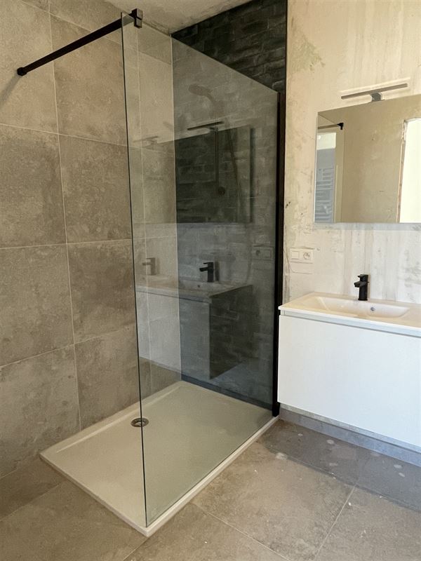 Op de eerste verdieping bevinden zich drie zeer mooie slaapkamers, waaronder uiteraard de grote master bedroom lopend over de volledige diepte van de woning. We hoeven u er niet bij te vertellen dat het plaatsen van een dressing hier tot de mogelijkheid behoord. In de badkamer hebben we een bad en een douche ingepland, alsook een dubbel lavabomeubel. Een tweede afzonderlijk toilet vervolledigd de eerste verdieping.