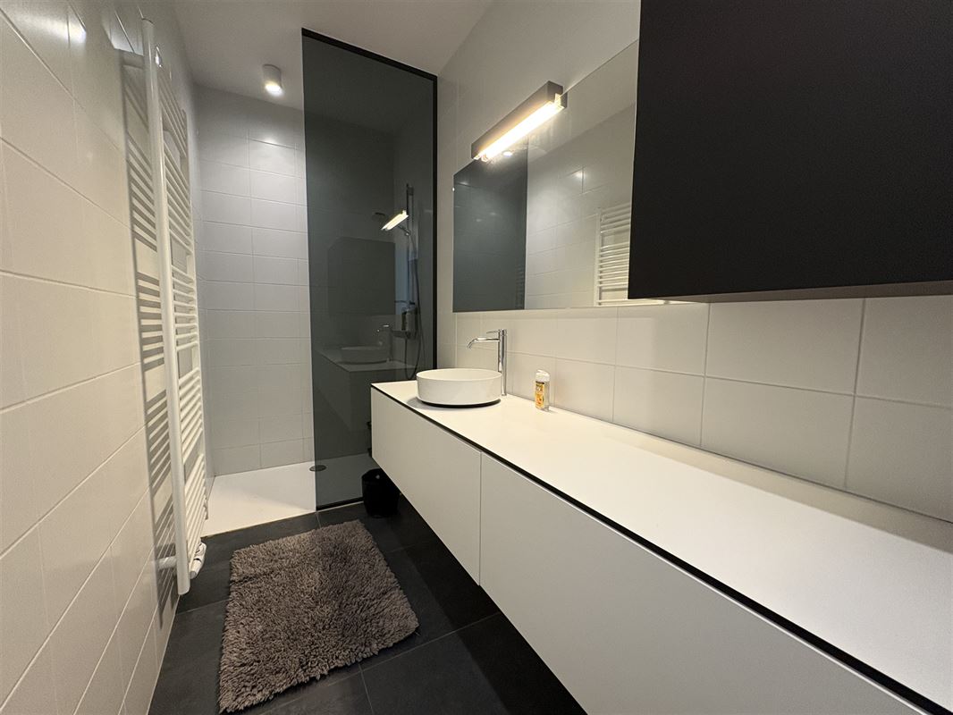 * Badkamer met inloopdouche, lavabo en maatkasten